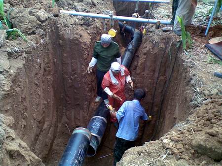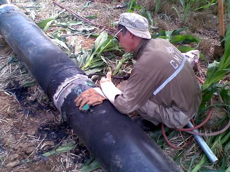 工地上,轟隆隆的挖掘機(jī)一刻不停地加緊作業(yè),龐大的壓路機(jī)穿梭來往,場外的施工人員忙著鋼管焊接、溝槽回填……各項(xiàng)工作如火如荼、緊張有序地進(jìn)行著。此時(shí)雖已避過高溫時(shí)段,但酷熱煩悶的高溫天氣還是讓人難以忍受,站在那里沒幾分鐘,我便開始渾身冒汗了。望向旁邊的施工人員,烈日的暴曬和電焊的灼熱早已使他們衣衫浸透、汗流浹背,而他們卻渾然不覺,臉上滿是認(rèn)真專注的神情。此時(shí)此刻,我才真正體會到他們嘴中所說的“晴天一身汗,雨天一身泥”的含義,這是他們工作狀態(tài)的真實(shí)寫照??粗麄冋橥度氲赝夜ぷ髦?,便不好意思上前打擾,開始獨(dú)自向前走去。