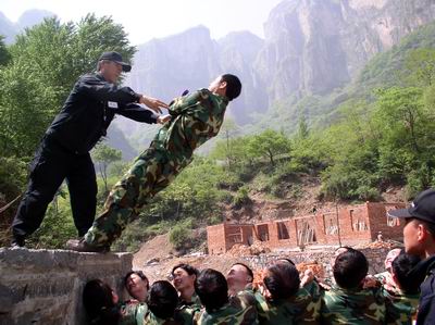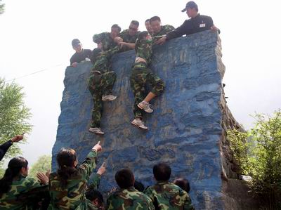 什么是“不到南墻不死心”,看看橫在面前高達四米多的障礙物以及上面掩映不住的笑臉就知道了。下有隊友甘做人梯,上有同伴傾力援手,9分50秒內(nèi),28名參訓(xùn)人員便順利完成了徒手攀越障礙環(huán)節(jié)的考驗。期間,不是手足卻勝似手足,沒有血緣卻又血脈相連的情與景,使得原本高不可攀的距離濃縮成了挺肩起立和下腰探手的咫尺之間……